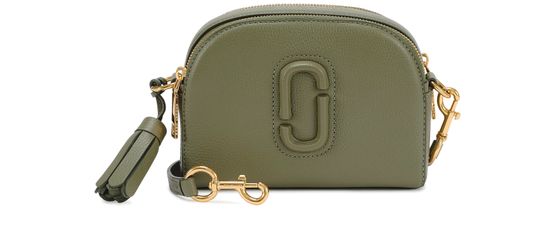 Embossed with the double-J logo on the front, the leather Camera Shutter bag by Marc Jacobs has a rounded shape that closes with a zip.