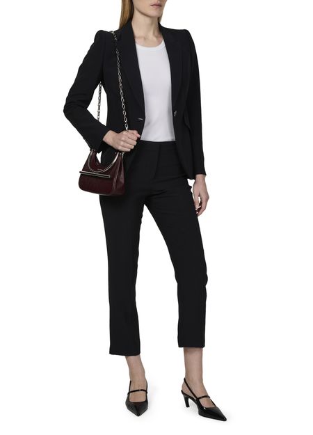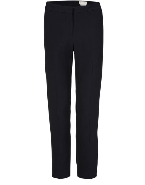 Step into effortless style with McQueen's Trousers. These ankle-length casual pants showcase a sleek skinny fit, complemented by a concealed closure and visible stitching. Featuring practical welt pockets and a back pocket, they effortlessly blend sophistication with comfort, making them a perfect choice for any modern wardrobe.