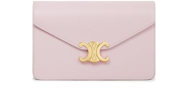 Celine's Wallet on chain Triomphe in shiny calfskin is a stunning blend of elegance and practicality. With its sleek design and versatile carrying options, it effortlessly transitions from hand carry to shoulder and cross-body styles. The Triomphe metallic snap button closure reveals a spacious compartment, six credit card slots, and a flat pocket, making it a perfect companion for any occasion.