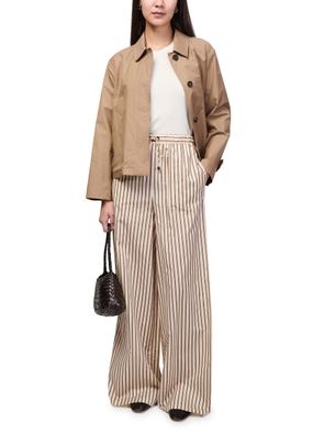 Reveal Max Mara's wide striped pants, crafted with an ankle-length silhouette and an elasticated drawstring waist for a tailored yet relaxed fit. The striped print adds a modern twist, making these trousers a versatile choice for both polished and laid-back ensembles.