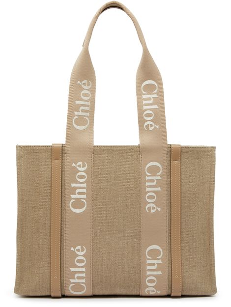 Chloé's Woody tote bag is a chic and practical accessory with two handles for hand carrying. It features the brand's logo on the front and includes an interior patch pocket for organization. The single compartment design makes it perfect for everyday use, providing a stylish and functional option for any outfit.