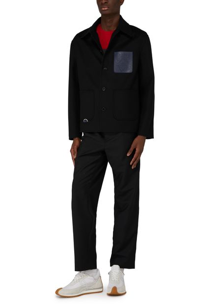 The Loewe Workwear jacket is a single-breasted jacket crafted from warm fabric. It features a practical breast pocket and showcases the brand's signature motif. With its straight cut, this jacket exudes a timeless and versatile appeal, making it a must-have addition to any wardrobe.