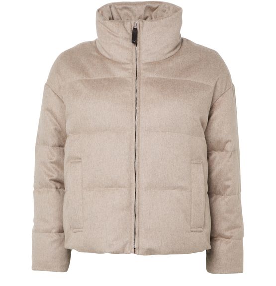 Reveal Max Mara zip-up puffer jacket, crafted from warm fabric with a padded texture for a modern silhouette. The short cut and high neck offer a sleek profile, while side pockets and a zipper closure add practical appeal. Lined for comfort, this piece transitions effortlessly from day to night.