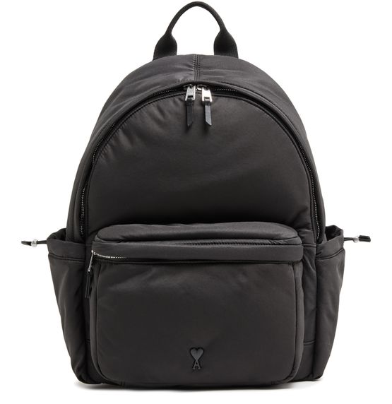 Ami's Ami's de Cœur backpack is designed for modern adventurers. Carried on the back, it features an adjustable strap for comfort and external pockets for easy access. With a zipper closure, visible topstitching, and logos at the front and back, this single-compartment bag combines style and functionality effortlessly.