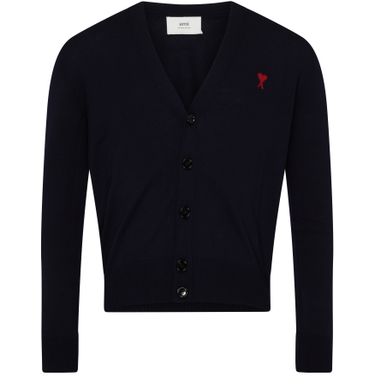 Ami de Cœur cardigan is a stylish long-sleeved gilet featuring a buttoned fastening and a V-neck design. Made with ribbed detailing, it exudes a classic appeal. The cardigan boasts a subtle chest logo and is designed with a straight cut, offering a versatile and flattering fit.