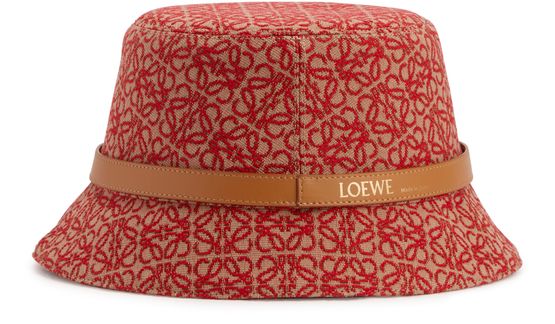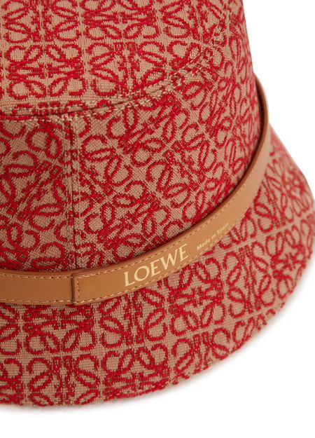 The elegance of the Anagram bucket hat is sure to impress! Its jacquard pattern and fine leather ribbon, embellished with the Loewe logo in gold letters, make it a must-have way to complete a chic outfit.