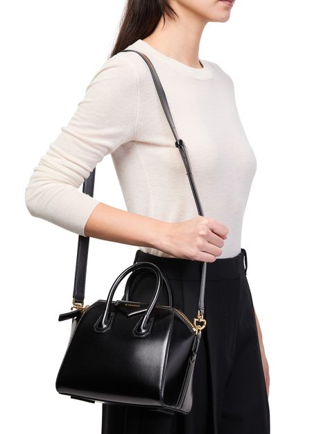 Reveal Givenchy's Antigona leather bag, crafted from smooth leather with a refined gold finish. The adjustable, detachable thin strap and double handles offer versatile carrying options, while the front logo and visible stitching highlight signature details. A spacious interior compartment and secure zipper closure complete this modern essential.