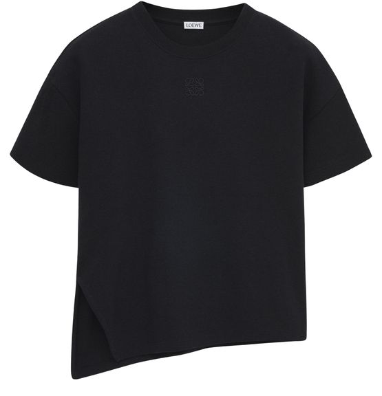 Loewe's Asymmetrical cotton and polyamide T-shirt showcases a unique asymmetric cut that adds flair to any outfit. With a crew neck and short-sleeved design, it features a striking appliquéd logo at the back and visible stitching, making it a stylish choice for everyday wear in a regular length.