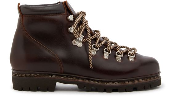 Reveal Paraboot's Avoriaz F boots with their high-top upper and silver finish. These boots feature a low block heel and a stylish embossed logo, complemented by visible stitching and a round toe for a sleek, modern look.