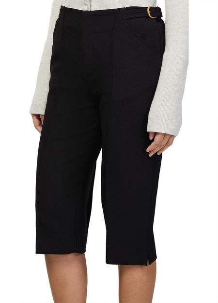 Reveal Chloe's belted pants, designed with a high-rise fit and below-knee length for a refined silhouette. Two front and side pockets, along with visible stitching and belt loops, add both function and flair. Perfect for elevating your warm-weather wardrobe with effortless sophistication.