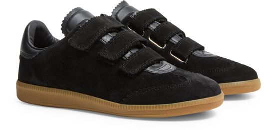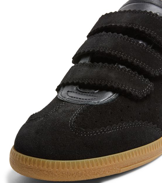 Reveal Isabel Marant's Beth sneakers, crafted from a refined mix of suede and smooth leather. The closed round toe and velcro fastening offer a sleek fit, while the contrasting sole and logo at the back add a signature touch. Visible stitching and a logo-printed insole complete this modern essential.