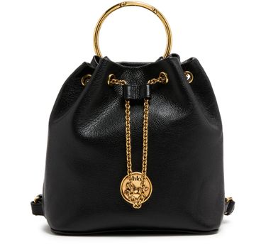Discover Chloé's Bracelet backpack, a versatile accessory with a drawstring closure and visible topstitching. The engraved front logo and gold finish add elegance, while the single compartment keeps essentials organized. Carry it by hand or on the back using the adjustable and thin strap, complemented by double handles.