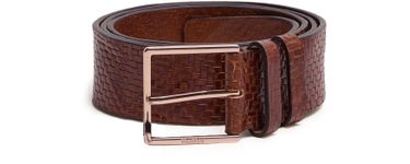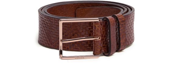 Reveal Max Mara's braided leather belt, crafted from supple leather with an adjustable clasp and gold-tone hardware. This refined accessory adds a polished touch to any ensemble, seamlessly transitioning from casual to formal looks. Its versatile design ensures effortless styling at the waist or hips.