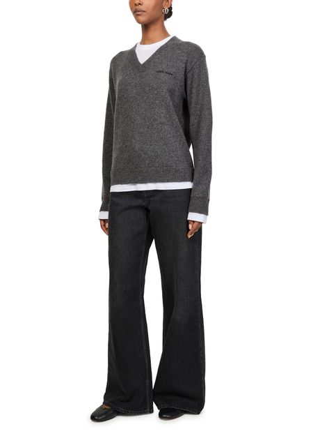 Unveil Miu Miu's cashmere v-neck sweater, crafted with a ribbed texture that exudes sophistication. This regular fit knitwear features long cuffed sleeves, offering a timeless elegance. Pair it effortlessly with your favorite jeans or a sleek skirt for a versatile, stylish look.