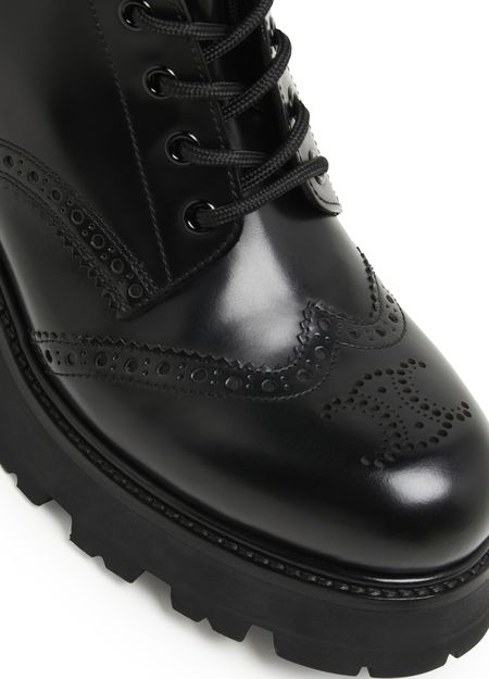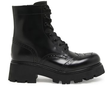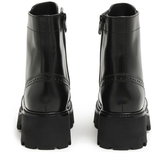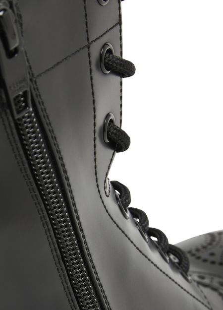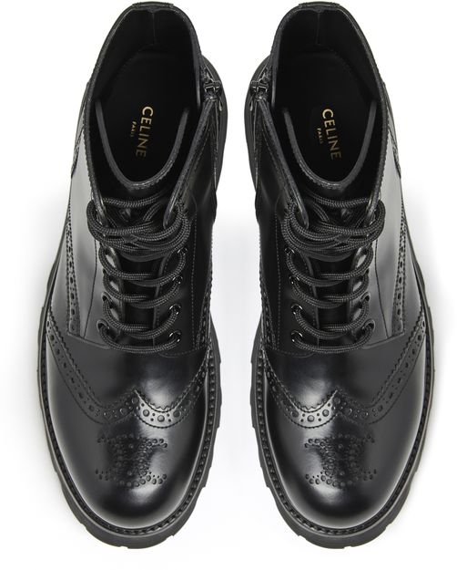 Step into sophistication with Celine's Triomphe rangers zipped boot. Featuring a side zipper for effortless wear, the high-top upper embraces the ankle with visible stitching detailing. The round toe and low block heel offer comfort, while the logo-printed insole adds a touch of luxury to these chic lace-up ankle boots.