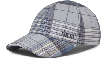 Celebrate Dior's Checkered Cap, a striking blue multicolor motif adorned with contrasting Dior embroidery. Crafted with six-panel construction and a grosgrain Dior signature on the interior, it features a tonal Dior Oblique jacquard lining. The adjustable fit ensures comfort with a CD-engraved snap.
