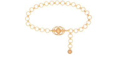 Reveal Chloe's Amulet belt, a stunning chain belt with exquisite gold-tone hardware. This elegant accessory, crafted to perfection, features an adjustable closure for a personalized fit. With its sleek design, it's perfect for elevating any outfit, whether casual or formal, making it a versatile staple in your wardrobe.