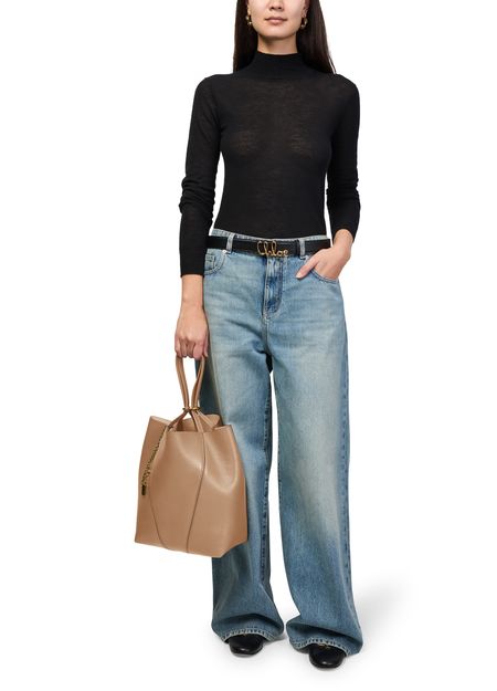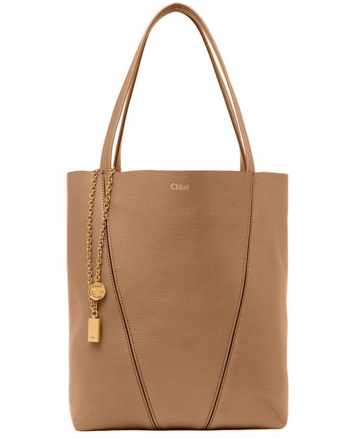 Reveal Chloe's Spin grained leather tote bag, crafted from supple grained leather with double handles for effortless carrying. Gold-tone charms and a front logo in gold letters add refined detail, while visible stitching and a spacious interior compartment ensure both style and practicality.