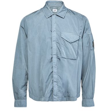 CP Company's Chrome-R Lens zip-up overshirt combines style and functionality. With a concealed closure and visible stitching, it features a classic shirt collar and long-sleeved design. Flap pockets and a breast pocket enhance practicality, while buttoned cuffs add a refined touch, making it the perfect choice for casual wear.
