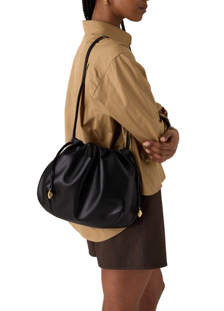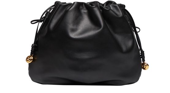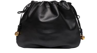 Reveal Liffner's clutch bag with charm, crafted from smooth leather with visible stitching for a refined finish. The drawstring closure adds a modern touch, blending style and practicality. This piece embodies understated sophistication, making it a versatile accessory for any contemporary wardrobe.