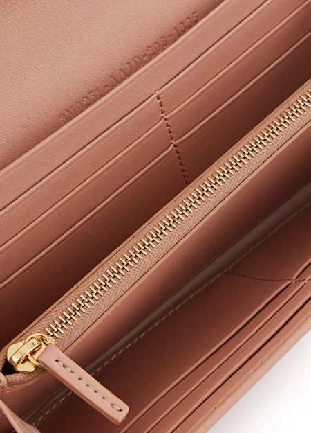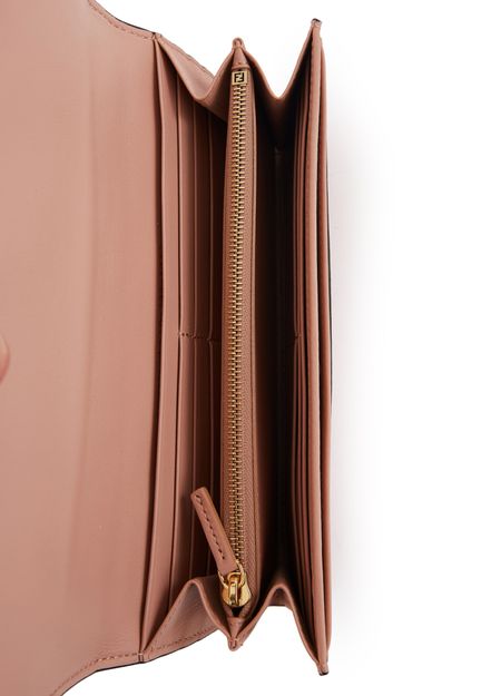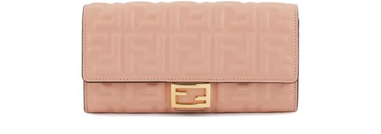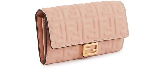 This Continental wallet by Fendi reflects the iconic style of the Fendi brand. An accessory with an elegant clasp, with the embossed logo all around.