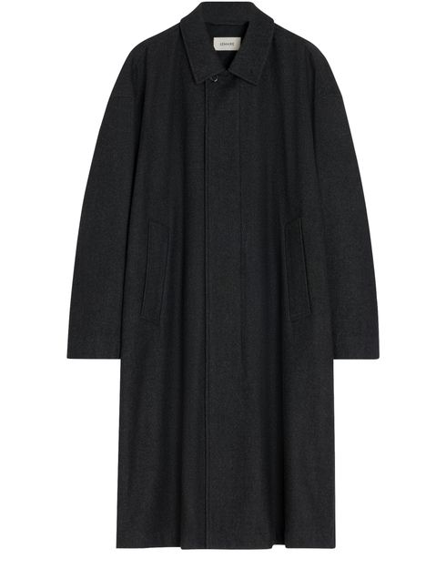 Reveal Lemaire's cotton overcoat, a knee-length classic with a concealed closure and side welt pockets. This long-sleeved piece features a collar and button fastening, offering a timeless silhouette. Perfect for versatile styling, it seamlessly transitions from casual to formal occasions.