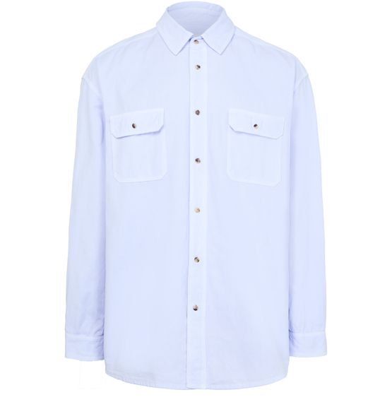 Loewe's Cotton shirt showcases a front buttoned closure and visible stitching, blending casual elegance with practicality. Flap pockets and a breast pocket add functionality, while the long-sleeved design and cuffed sleeves enhance its refined look. This shirt collar piece is perfect for those seeking stylish versatility in their wardrobe.