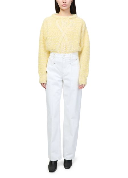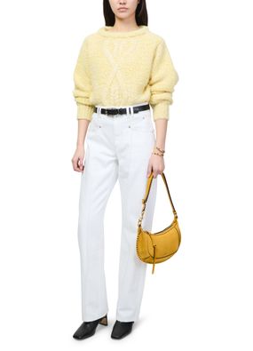 Reveal Isabel Marant's Dorota rond neck sweater, crafted in marled material for a textured finish. The crop silhouette, round neck, and long sleeves with visible stitching create a modern edge. This sweatshirt pairs effortlessly with high-waisted jeans or skirts for a versatile, elevated look.