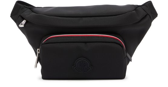 Moncler's Durange belt bag combines style and functionality with its visible topstitching and sleek design. Featuring a secure zipper closure and a prominent front logo, it boasts external pockets and a back pocket for convenience. Worn on the hips or waist, its wide strap ensures comfort and ease for everyday adventures.