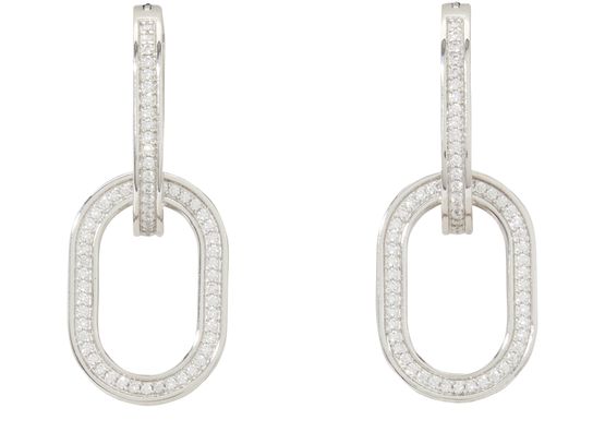 Designed like links in a chain, Celine's brass and crystal Edwige hoop earrings will highlight your face and complement your outfit. These feminine earrings are perfect with a plain black outfit.