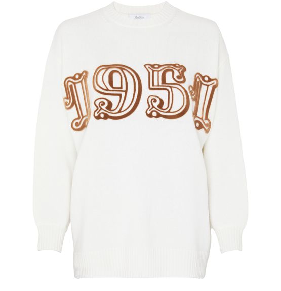 Max Mara's Fido 1951 sweater is a cozy knit sweater with an oversized fit, perfect for chilly days. It features ribbed detailing, a classic round neck, and long sleeves for added warmth. This versatile piece can be dressed up or down, making it a must-have addition to any wardrobe.