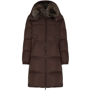 • Description : zipper closure, fur detail, knee length, hood, side welt pockets, long-sleeved, puffer.
