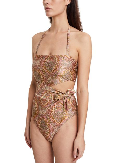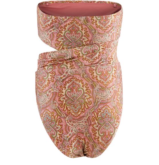 Zimmermann's strapless, feminine Freja swimsuit features an asymmetric cut at the waist that will show off your curves in style.