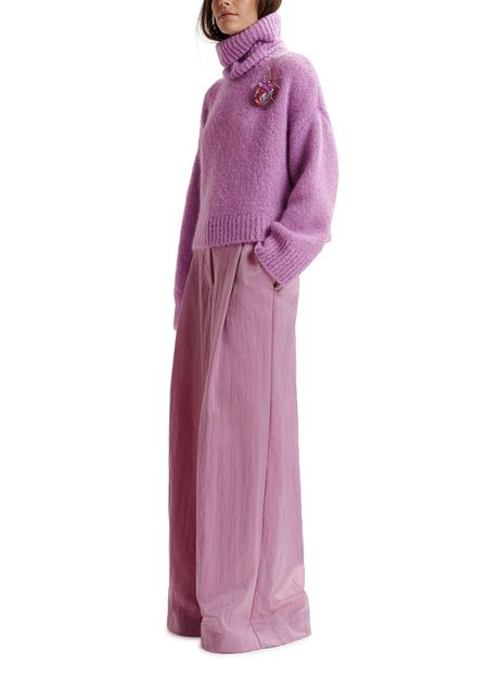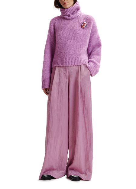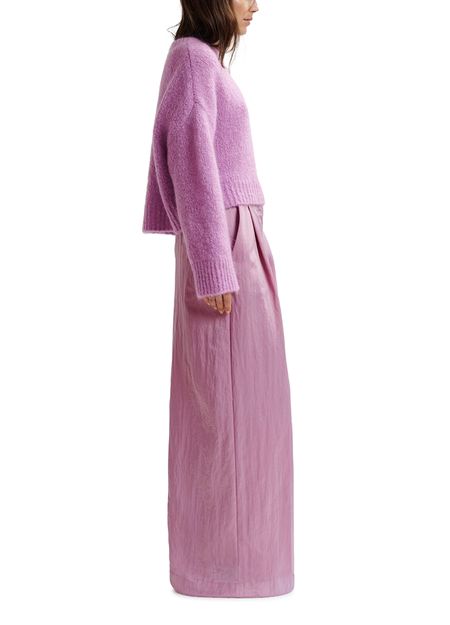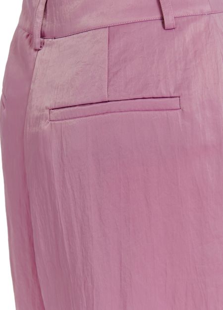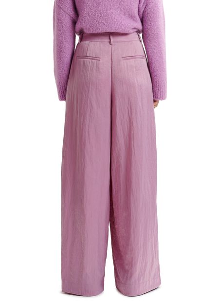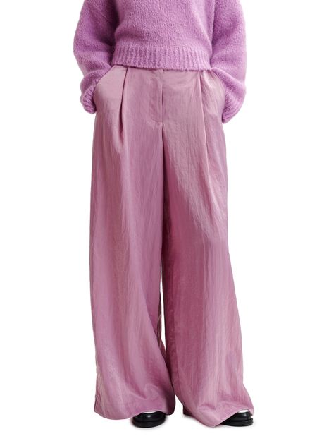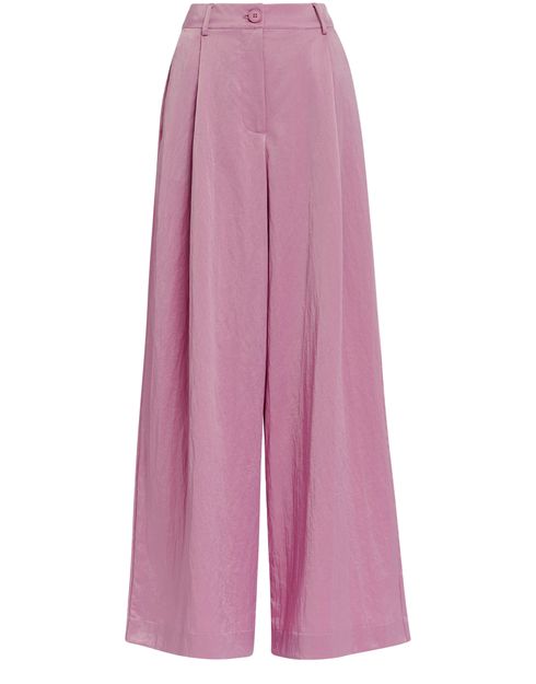 Tailored from a lustrous recycled polyamide-blend satin fabric, these pants have been smartly detailed with pleats at the waist that fall into soft folds down the pooling wide leg. The pair is finished with two welt pockets at the back, slanted front pockets, and a zip-button front closure.