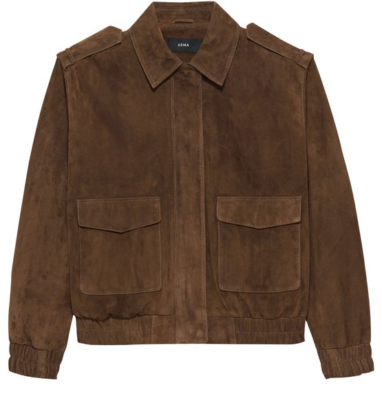 Reveal Arma's suede casual jacket, a short silhouette crafted from supple suede with a concealed zipper closure. Long sleeves and flap pockets add functional flair, while two front pockets enhance practicality. This versatile piece transitions seamlessly from day to night, elevating any modern wardrobe.