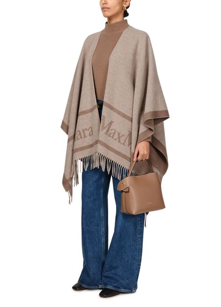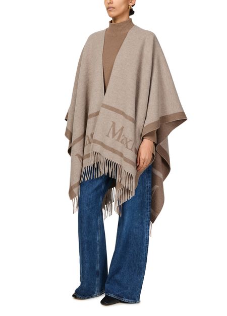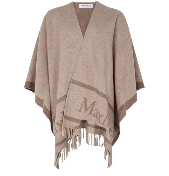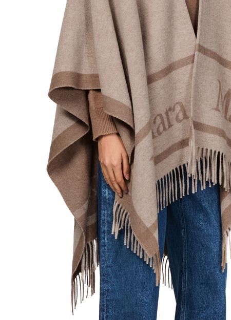 Introducing the Max Mara Hilde cape, a three-quarter-sleeved marvel adorned with fringe details. This stylish piece is accentuated by a front logo, effortlessly blending elegance and modernity. Experience its versatility, perfect for both casual outings and formal events, making it a must-have addition to your wardrobe.