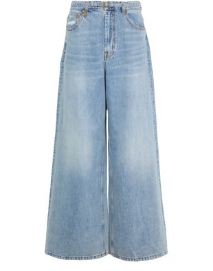 Zimmermann's Illuminate relaxed flare jeans offer a loose fit with a low-waisted design, perfect for effortless style. Featuring a buttoned and concealed zipper closure, belt loops, and visible stitching, these ankle-length denim jeans boast a classic five-pocket style, combining comfort and elegance for any casual occasion.