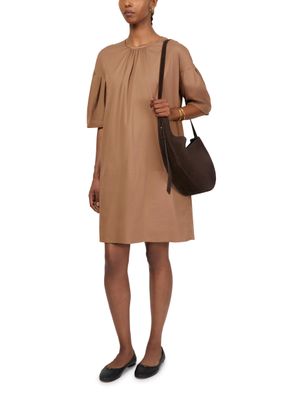 Reveal S Max Mara's Isotta mini dress, a masterpiece that combines a loose fit with a knee-length hem. Featuring a charming round neck and playful puff short sleeves, this dress ensures comfort with its back zipper closure. Perfect for any occasion, it embodies effortless elegance.