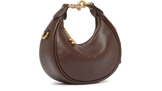 Indulge in Coach's Jonie hobo bag, a sophisticated accessory featuring a metallic logo on the front. This versatile piece boasts a single compartment and a zipper closure, paired with a thin strap for crossbody or shoulder wear. The gold finish and visible topstitching add a refined touch.