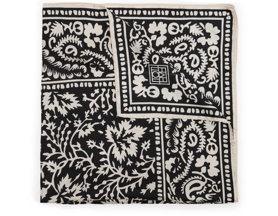 • Description : Silk scarves, front logo, floral print, topstitched edges.