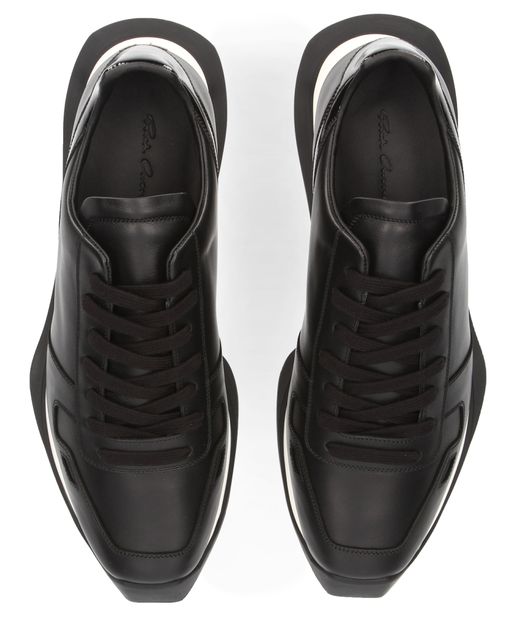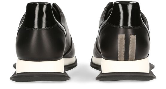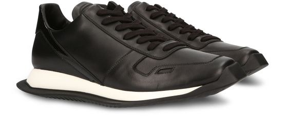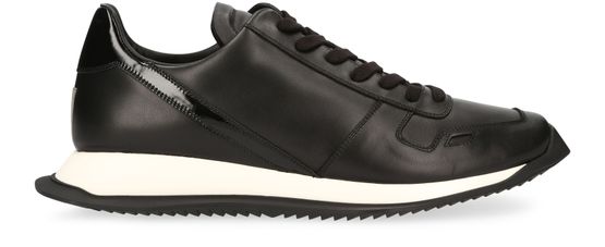These lace-up sneakers are designed by Rick Owens. These low-top two-tone leather sneakers combine a molded sole and square toe. For a contemporary look.