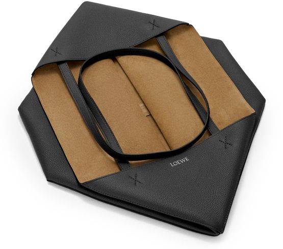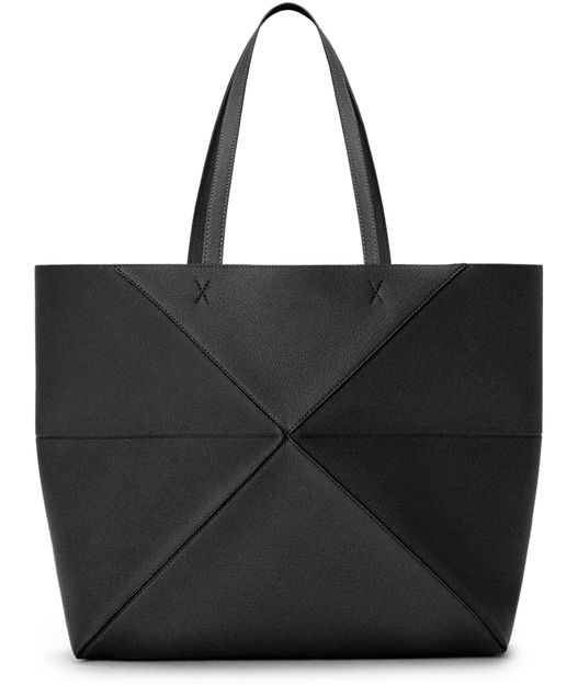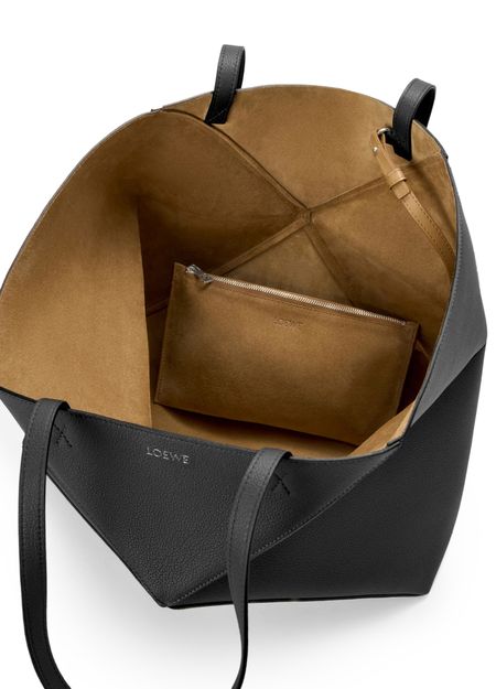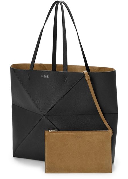 Reveal Loewe's Large Puzzle Fold tote bag, a statement piece defined by its double handles and front logo. The visible stitching and highlight expert craftsmanship, while the spacious interior compartment ensures both style and practicality for your everyday essentials.