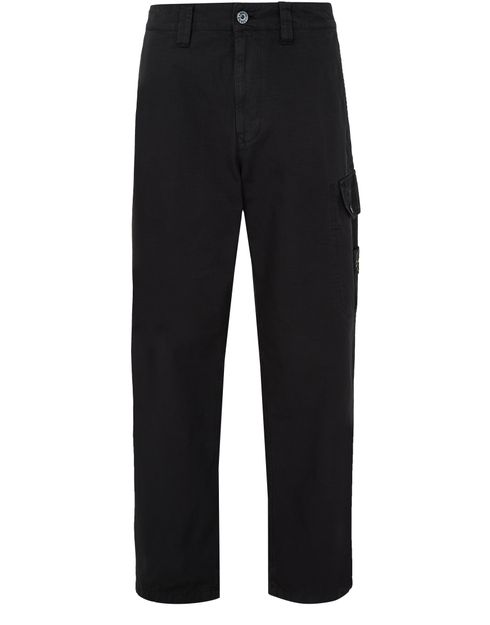 Introducing Stone Island's logo patch jeans, a modern take on cargo pants. These ankle-length trousers feature a buttoned zipper closure and large side pockets, perfect for a sleek yet functional look. The visible stitching and belt loops add a touch of sophistication, while the drawstring hem ensures a comfortable fit.