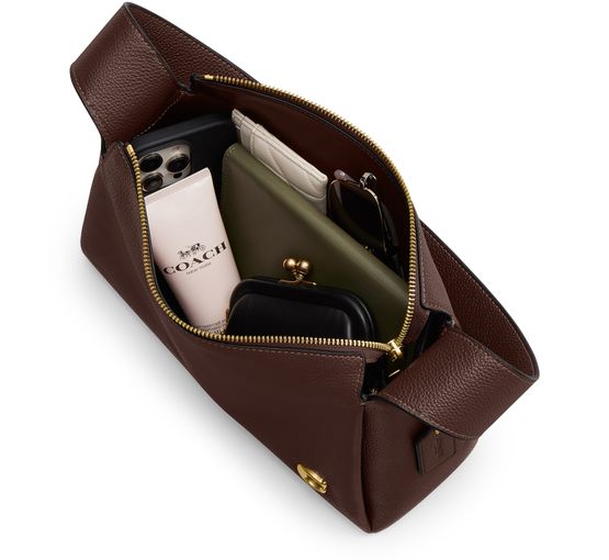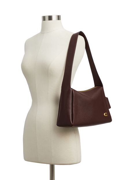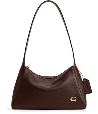 Reveal Coach's Lola shoulder bag, a masterpiece of elegance crafted from grained leather. This bag features a decorative label with an embossed "Coach" logo and a chic "C" detail. Its single handle and zipper closure ensure practicality, while the gold finish adds a touch of sophistication.