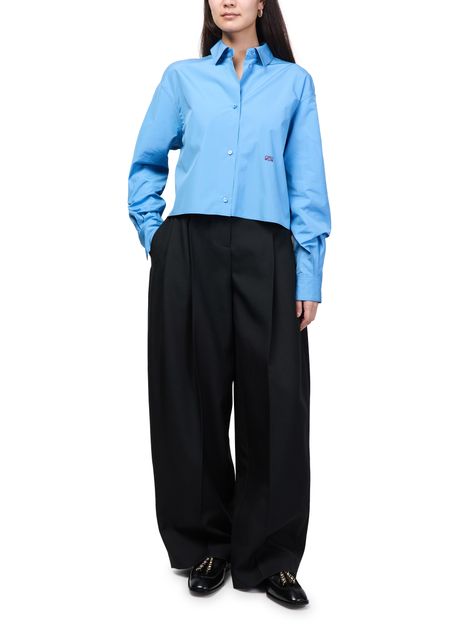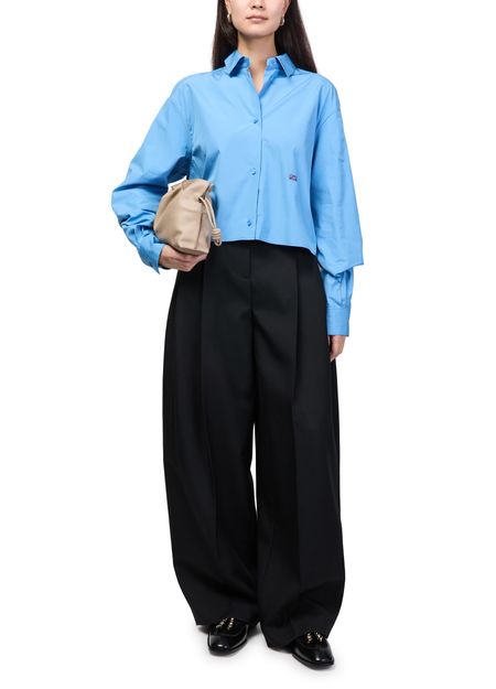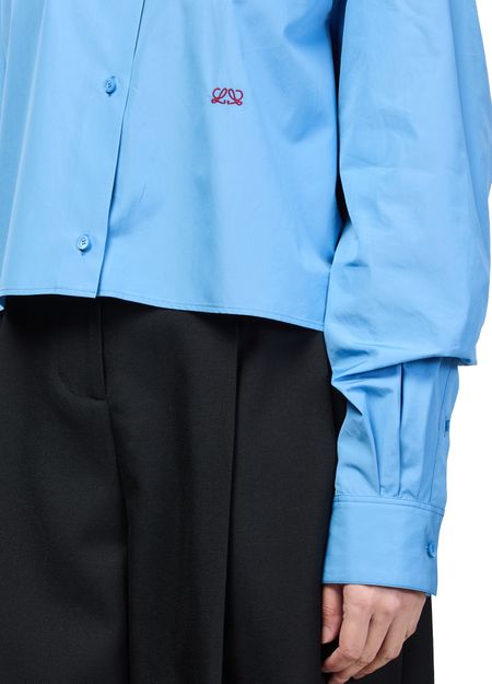 Reveal Loewe's long-sleeved cotton shirt, featuring a refined V-neck and dropped shoulders for a relaxed silhouette. The front buttoned closure and cuffed sleeves add a tailored touch, while the soft cotton fabric ensures comfort. Perfect for elevating both casual and sophisticated ensembles.