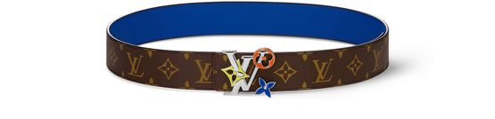 <p>The eye-catching LV Blossom 40mm Reversible Belt offers a fresh interpretation of the iconic LV Initials. With a strap that reverses from Monogram canvas to bright blue nappa leather, this finely crafted accessory features a silver-finish signature buckle adorned with enamelled Monogram Flower charms in colours that coordinate with the season’s LV Trainers. |