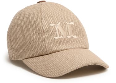 Reveal Max Mara's M logo cap, a contemporary cap featuring a curved visor and split crown for a refined silhouette. The embroidered logo at the front and visible stitching add a distinctive touch, making it a versatile accessory that seamlessly elevates both casual and polished ensembles.