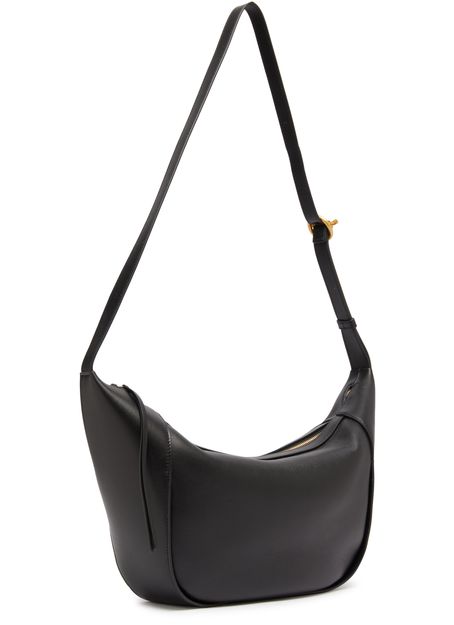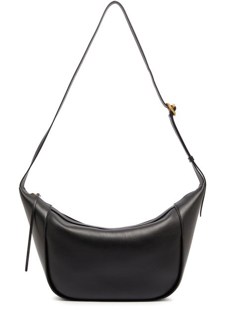 Wandler's Maggie shoulder bag boasts a sleek design with a zipper closure and a single compartment for effortless organization. Its gold finish adds a touch of elegance, while the visible topstitching enhances its charm. With a single handle and an adjustable strap, it can be worn on the shoulder for versatile styling.