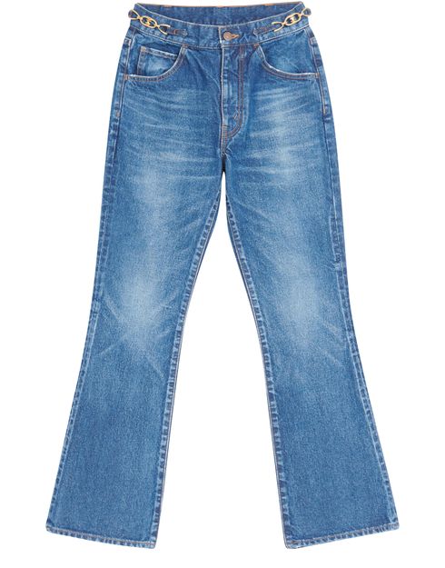 • Description : Sunshine Wash, "Triomphe" Chains, classic Fit, high Waist, straight Leg, 5 Pockets, celine Jeans-Engraved Zipper And Button.