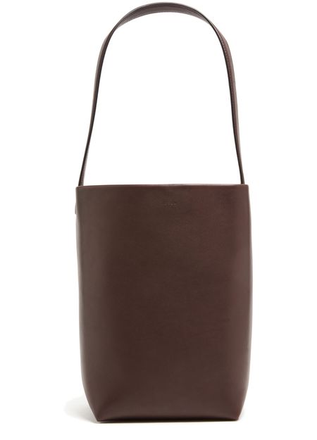 The Row's N/S Park Tote medium bag showcases a single compartment for effortless organization. Hand carried or worn on the shoulder, its thin strap offers versatility. The visible topstitching adds a touch of elegance, making this shopper tote bag an essential accessory for those who appreciate refined simplicity and functionality in everyday style.